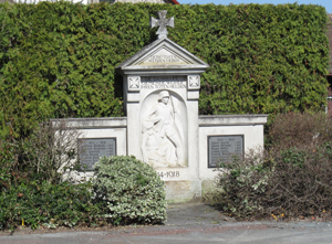 Dreiteiliges Denkmal mit krönendem Tatzenkreuz in der Ortsmitte.
