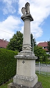 Denkmal und Gräber für bayrische Gefallene im Nordteil der Stadt. Quader mit aufgesetzter Säule und krönendem Löwen.