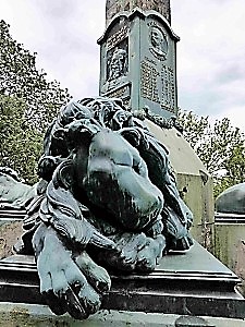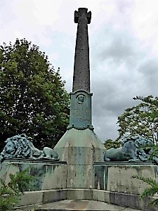 Denkmal für die Opfer der III. deutschen Armee in der Schlacht bei Weißenburg. Sockel mit vier herausragenden Ecken auf denen jeweils ein großer schlafender Löwe aus Bronze ruht. Daraus aufragend eine Säule mit krönendem Kreuz. Im unteren Bereich der Säule Bronzetafeln mit Porträts der Heerführer, Widmungen und Tabellen mit Verlustzahlen. Direkt daneben ein Massengrab von Angehörigen der Armee.