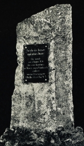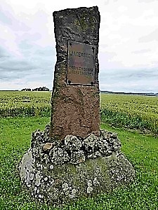 Denkmal des Jäger-Bataillons Nr. 5 in Gedenken an die Schlacht südlich von Weißenburg 1870. Aufgerichteter Felsblock mit Widmungstafel.