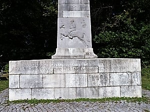 Winden, Gemeinde Sinzheim, Landkreis Rastatt, Baden-WürttembergPLZ 76547 Monumentales Denkmal für die Gefallenen des 3. Schlesischen Dragoner-Regiments Nr. 15 außerhalb der Gemeinde auf einer Anhöhe. Die Frontseite ziert neben der Inschrift jeweils ein Wappen von Großstrelitz (Groß Strehlitz) (im ehemaligen Oberschlesien, heute Polen) und Hagenau (im Elsass) sowie die Abbildung eines Soldaten auf seinem sich im Sprung befindlichen Pferd.