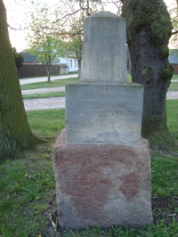 Denkmal 1866-1871: Zum Gedächtniß. Am Feldzug 1866 gegen Österreich und Süddeutschland, 1870 und 1871 gegen Frankreich haben …. (Rest total verwittert) Toul, Beaumont, Sedan, Paris, Strassburg, Belfort 1866 (Namen) 1870 und 1871 (Namen) Errichtet zum Friedensfest 18. Juni 1871