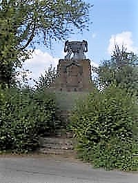 Denkmal des Grenadier Regiments Graf Kleist von Nollendorf, (1. Westpreussisches) No. 6. Aus Sandsteinblöcken aufgetürmt, mit krönender Feuerschale. Ein Bildnis Kaiser Wilhelms I. im oberen Bereich fehlt heute.