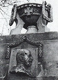 Die Metall-Plakette mit dem Bildnis Kaiser Wilhelms I im oberen Bereich des Denkmals wird