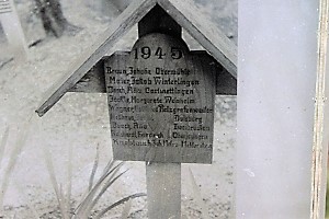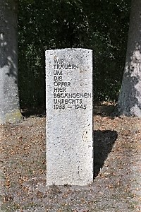 Gedenkstein und Hinweistafel im Anstaltsfriedhof. (Die Namen stammen von einem Foto auf der