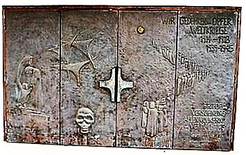 herausgedrückt. Auf der Platte links die Jahreszahlen 1914-1918, darunter sitzt eine