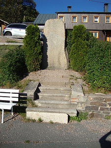 Kriegerdenkmal auf dem Aschberg (Haberzettl), aufrecht stehender Granitstein. Im Granit waren 51 Namen eingeschlagen. Leider lassen sich diese nicht mehr lesen. Durch die Mithilfe von Bürgern konnten die Inschrift, Namen und Sterbedaten anhand einer alten Fotografie wieder ermittelt werden.