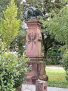 Auf dem Friedhof befindet sich ein Denkmal für die Teilnehmer des Krieges 1870-71. Das 1896 errichtete Denkmal weist die damals üblicherweise verwendeten Symbole wie Adler an der Spitze, Schwert mit Lorbeerzweigen und Schleifen sowie Eisernes Kreuz (Jahreszahl 1870) auf der Frontseite auf.