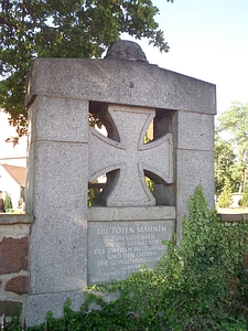 Denkmal für die Kriegsopfer des 2. Weltkriegs im Nachbarort Eichstedt. Gedenken auf Familiengräbern. Namen von Gefallenen aus den Archiven.