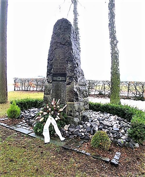 Steinsäule aus gemauerten Bruchsteinen, darin eingefügt eine Gedenkplatte