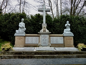darunter eine Widmung und rechts und links eine Platte mit den Gefallenen des Ersten Weltkrieges.