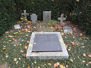 Grabstein des Kriegsopfers wurde neu gruppiert und um eine neue Gedenkplatte für ein Sammelgrab aufgestellt. Der Name ist ebenfalls auf der Gedenkplatte des Sammelgrabes 2 verzeichnet