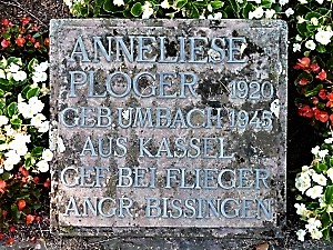 Aus Kassel, gef. bei Fliegerangr. Bissingen, Abteilung 1, Reihe 5, Grab 2