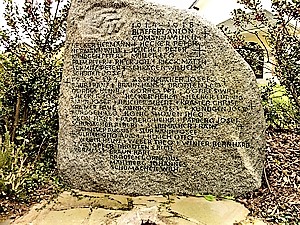 auf der geglätteten Frontseite die Namen der Gefallenen beider Weltkriege. Oben links auf