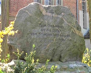 Gedenkstein Zum Gedenken an die Opfer von Kriegen und Gewalt. Römer 15.33.