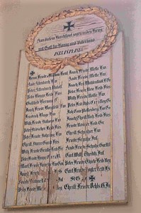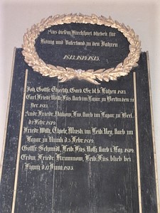 Tafel 1815 (Gefallene) Aus diesem Kirchspiel blieben für König und Vaterland in den Jahren 1813.1814.1815 (Namen)