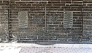 An einer Wand ein Kreuz daneben und zwei Gedenkplatten