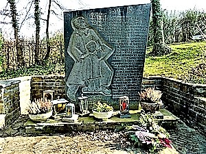 Auf der Rückseite des mit einer flachen Mauer eingefassten Denkmalplatzes auf dem Friedhof