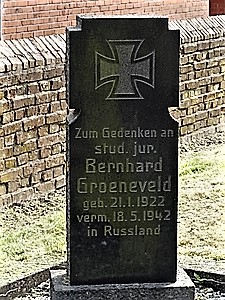 Name nicht auf dem Ehrenmal verzeichnet; Hermann Groeneveld ruht auf der Kriegsgräberstätte in Korpowo, Block 7, Reihe 18, Grab 1126