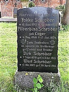 Brüder; Name auch auf dem Ehrenmal verzeichnet; Gerd Schoormann ruht auf der Kriegsgräberstätte in Fort – de – Malmaison, Block 4, Reihe 14, Grab 552