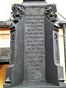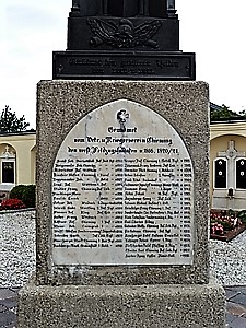 Gewiedmet (sic!) den gefallenen Helden von 1870 u. 1871. Zum Gedenken an die Gefallenen des Krieges 1870-71 gewidmet vom Krieger und Veteranenverein Chieming. Gewidmet vom Vetr. u. Kriegerverein Chieming den verst. Feldzugssoldaten v. 1866, 1870/71.