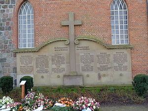 An der Kirche von Dänischenhagen ist eine Gedenktafel mit Inschrift angebracht. Die Tafel wird geteilt durch ein auf einem Sockel (mit Inschrift) stehenden Kreuz. Unter den jeweiligen Ortsnamen der Kirchengemeinden sind die Namen der Gefallenen aufgeführt.