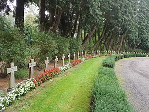 1. Neben der neuen Kapelle am Haupteingang ein Gedenkfeld für Soldaten, deutsche Zivilopfer und katholische ZwangsarbeiterInnen verschiedener Nationen aus West-, Ost- und Südosteuropa, die in Delmenhorster Rüstungsbetrieben arbeiten mussten. 2. Im mittleren linken Teil des Friedhofes in einer Reihengrabanlage 49 deutsche Soldaten des Zweiten Weltkrieges, in Delmenhorster Lazaretten verstorben, bei Luftangriffen ums Leben gekommen oder während der Endkämpfe im April 1945 gefallen.