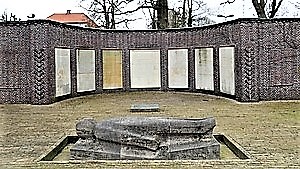 Die im Oktober 1925 eingeweihte Gedenkstätte am Rathaus besteht aus sieben in eine gebogene Ziegelsteinmauer eingelassene Sandsteintafeln, auf der die achthundertvierundzwanzig Namen der im Ersten Weltkrieg gefallenen und vermissten Soldaten verzeichnet sind. 1966 wurde die Mitteltafel durch eine Tafel mit dem Symbol des Volksbund Deutsche Kriegsgräberfürsorge e.V. ersetzt. Außerdem wurde eine von Professor Kurt Schwerdtfeger aus Hildesheim gearbeitete Skulptur platziert, die den Sarkophag eines Gefallenen darstellen soll. 1991 kam ein Gedenkstein dazu, auf dem auch ausdrücklich der Opfer des Nationalsozialismus gedacht wird. Die Namen der im Zweiten Weltkrieg Gefallenen und Vermissten wurden in einem Ehrenbuch aufgezeichnet, das 1959 im Rathaus ausgelegt wurde.
