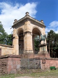 Am Waldrand auf dem Werderberg bei Edenkoben steht das weithin sichtbare National-Denkmal zum Sieg des Deutsch-Französischen Krieges von 1870-71 und der nachfolgenden Reichsgründung. Das imposante Bauwerk wurde nach einem Entwurf des Bildhauers August Drumm am 3. September 1899 eingeweiht. Im Vordergrund befindet sich auf einem Steinsockel ein Jüngling, der auf einem Pferd sitzt und einen Ölzweig in der Hand hält aus Bronze. In der hinteren Apsis sind steinerne Büsten von Kaiser Wilhelm I., Bayernkönig Ludwig II. und Prinzregent Luitpold aufgestellt. Zwei Frauenfiguren, die sich die Hände reichen, stehen symbolisch für die Einigkeit von Nord- und Süddeutschland. Weitere Personen, die als Bildrelief eingearbeitet wurden, sind die Generäle von der Tann und von Hartmann für Bayern und Fürst Bismarck und Graf Moltke für Preußen. Ein Reichsadler und eine deutsche Eiche, aus deren Ästen die Wappen der deutschen Staaten wachsen, sowie ein reiches Mosaik in der Kuppel schmücken den Innenraum des Denkmals. Hinter dem Bauwerk führt eine Außentreppe auf die durch vier Säulen begrenzte Terrasse, die einen weiten Blick über die Pfälzer Landschaft bietet. Ursprünglich stand an dieser Stelle ein mit einem Adler gekrönter Sandsteinobelisk, der so genannte „Straßburger Stein“. Dieses Denkmal befindet sich heute ca. 400 m südlich am Rand eines ehemaligen Steinbruchs. Der Bronzeadler und ein Bildrelief des Generals August Karl Friedrich von Werder sind nicht mehr vorhanden. Im Wald des nach ihm benannten Werderbergs befinden sich noch weitere Gedenksteine: „Zum braven Landwehrmann“, für die „tapferen“ Reservisten der Landwehr, ein Findling für Reichskanzler Otto von Bismarck und den „Moltkestein“ zur Erinnerung an den Chef des Generalstabs Graf Helmuth von Moltke („der Ältere“). Quelle: H. Hartkopf, „Das Sieges- und Friedensdenkmal und die Denkmäler auf dem Werderberg“, Edenkoben, 2008.