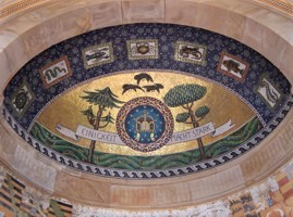 Sieges- und Friedensdenkmal Inschriften in der Mitte EINIGKEIT MACHT STARK WIR WOLLEN SEIN EIN EINIG VOLK VON BRÜDERN IN KEINER NOTH UNS TRENNEN UND GEFAHR DEUTSCHES REICH 1870-71