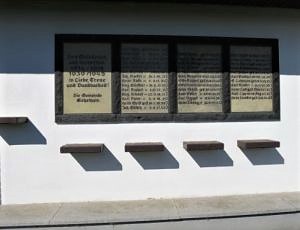 Vier Gedenktafeln in einer Wand