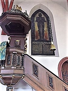 außer dem Bibelzitat: „Das Reich muss uns doch bleiben“, das Bildnis eines schwarzen, betenden Ritters