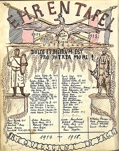EHRENTAFEL 1914 1918 MIT GOTT für KÖNIG & VATERLAND DULCE ET DECORUM EST PRO PATRIA MORI ! (Namen) 1914 – 1918 REQUIESCANT IN PACE