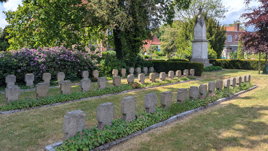 Auf dem alten Friedhof bei der evangelischen Kirche St. Cyprian und Cornelius befindet sich eine Kriegsgräberstätte mit 41 deutschen Soldaten, gefallen (oder Tage danach ihren Verwundungen erlegen) während der Kämpfe in diesem Raum vom 20.-30. April 1945;