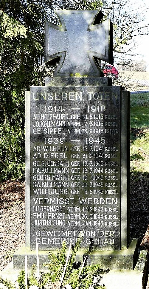 UNSEREN TOTEN (Namen) GEWIDMET VON DER GEMEINDE GEHAU