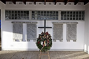 Friedhofskapelle: Krieger aus unserer Gemeinde: (Namen). Den Opfern der Kriege 1914 - 1918 1939 – 1945