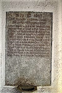 Gedenktafeln Gott lasse unsere Helden ruhen in einem ewigen Frieden! 1914 1918 (Namen) Gott schenke unseren Helden die ewige Siegerkrone! 1939 1945 (Namen)