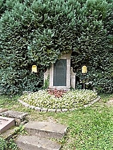 Katholischer Friedhof bei der römisch-katholischen Liebfrauenkirche. Gepflegte kleine Gedenkstätte am Rand des Friedhofs.