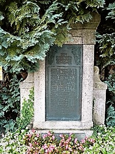 Große Metalltafel: DEM EHRENDEN GEDENKEN GEWIDMET (Namen).
