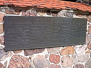 Tafel 2. Weltkrieg: 1939 1945 Aus Hindenburg und Gethlingen starben für ihr Vaterland (Namen) Wir gedenken aller