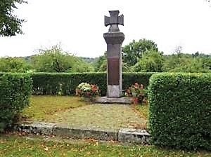 Eckige Steinsäule mit großem deutschen Kreuz und einer Gedenkplatte