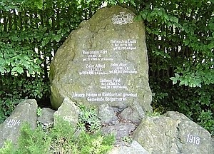 Denkmal-Nr. 09233936 Weltkrieg I: Ein einfacher Naturstein (Hornfels) aus dem nahe gelegenen Steilhand der Trieb. Weltkrieg II: Stele aus Bergener Granit. 1996 gefertigt und aufgestellt.