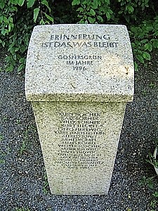 2. Weltkrieg (auf der Deckplatte) ERINNERUNG IST DAS WAS BLEIBT GOSPERSGRÜN IM JAHRE 1996 (Vorderansicht) (Namen)