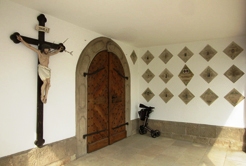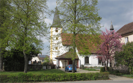 Im Eingangsbereich der Kirche hängen kleine Gedenktafeln aus Stein mit Fotos für die Gefallenen und Vermissten des 1. Weltkriegs. Vor der Kirche steht ein modernes Denkmal aus Steinquadern für den 2. Weltkrieg. Ergänzende Angaben von Einzelgedenken auf Privatgräbern
