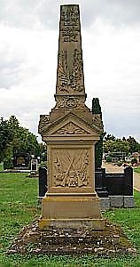 1870-71: Sandsteinobelisk, reich verziert mit Lorbeer- und Eichenzweigen, gekreuzten Fahnen, Gewehren und Kanonen. 1. Weltkrieg: Stele mit Eisernem Kreuz Ein Stahlhelm mit Schwert von Lorbeer- und Eichenlaub umrankt