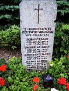Sowie sieben unbekannte Soldaten, gefallen am 20.04.1945 und weitere vier unbekannte Soldaten.
