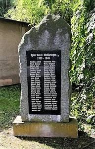 Eine Anlage (Denkmal-Nr. 09236691) gegenüber der Dorfstr. 72a., 1921 von der Fa. Kober und Voigt aus Reichenbach i. V. entworfen und errichtet: Steinblock mit Adler-Relief und Inschrift für die Gefallenen des Ersten Weltkrieges. Ein weiterer Block mit den Namen der Opfer des Zweiten Weltkrieges wurde nach 1990 hinzugefügt. Rechts und links dieser Blöcke befinden sich kleinere Steine mit den Namen der Opfer des Krieges von 1870/71.