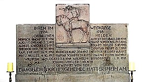IHREN IM WELTKRIEGE 1914 1918 GEFALLENEN HELDEN (Namen) GEWIDMET VON DER EVANGELISCHEN GEMEINDE HATTERSHEIM A.M.