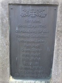 Kriegsgräber. Außerdem befinden sich oberhalb der Sammelgrabstelle noch zwei Familiengräber, in denen Wehrmachtssoldaten bestattet sind, die in die Heimat überführt wurden