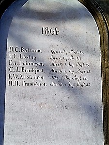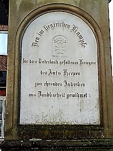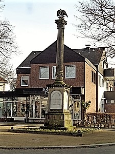 Das Kriegerehrenmal an der Ecke Salzufler/Hillegosser Straße erinnert an die Einigungskriege sowie an die dabei Gefallenen aus dem ehemaligen Amt Heepen. Darunter befand sich auch der Sohn des Denkmalstifters. Eingeweiht wurde es 1874. Auf dem Sockel befinden sich die Namen der Gefallenen und deren militärische Einheit. Das Denkmal wird gekrönt von einem Adler, der den französischen Degen niederhält. Quelle: de.wikipedia.org/wiki/Heepen